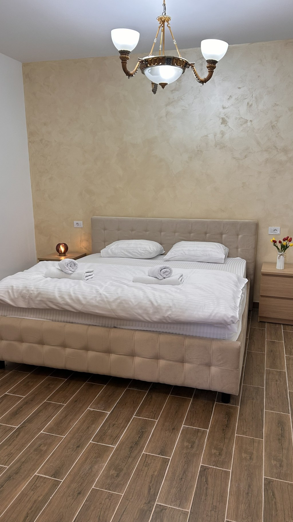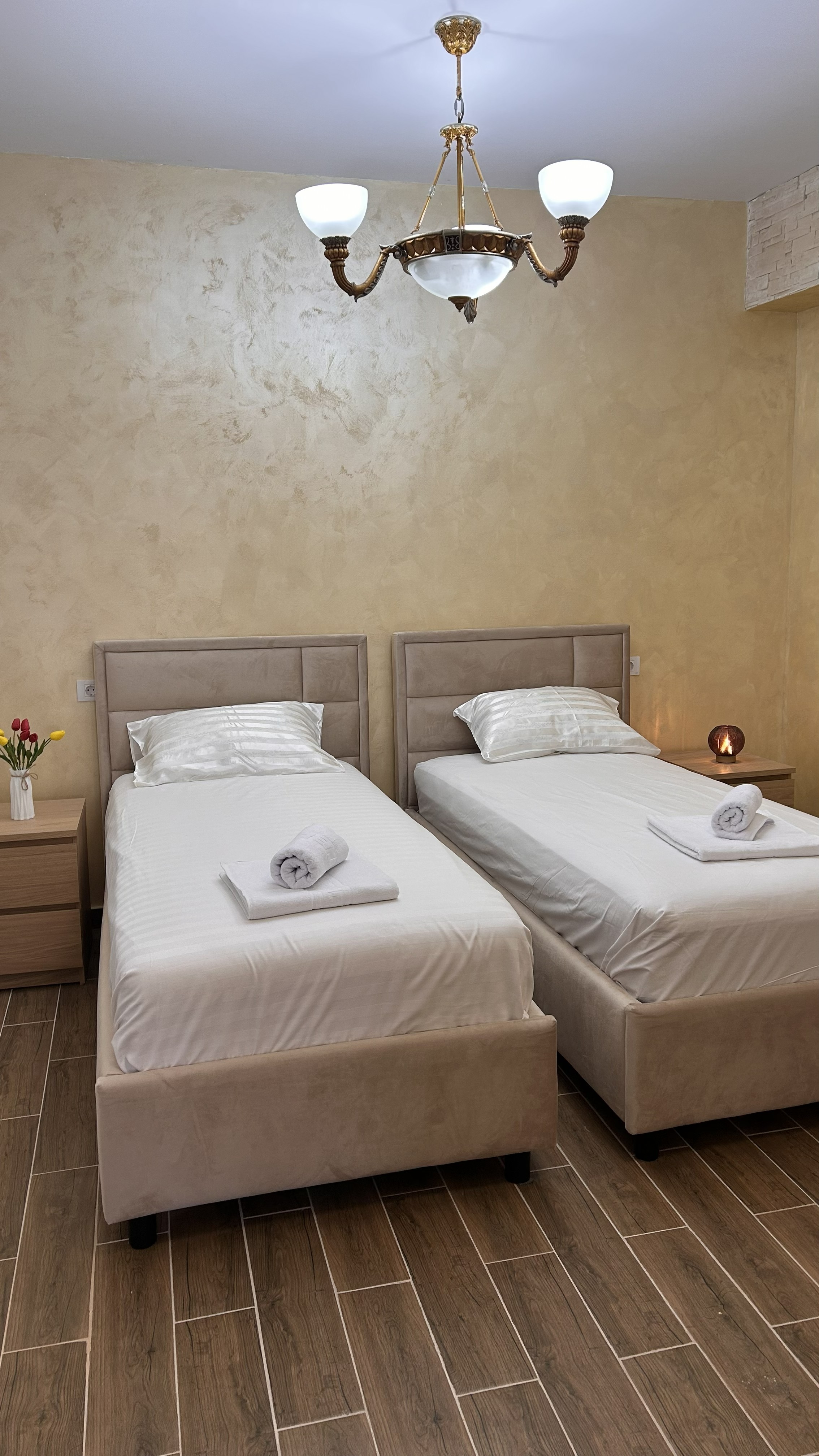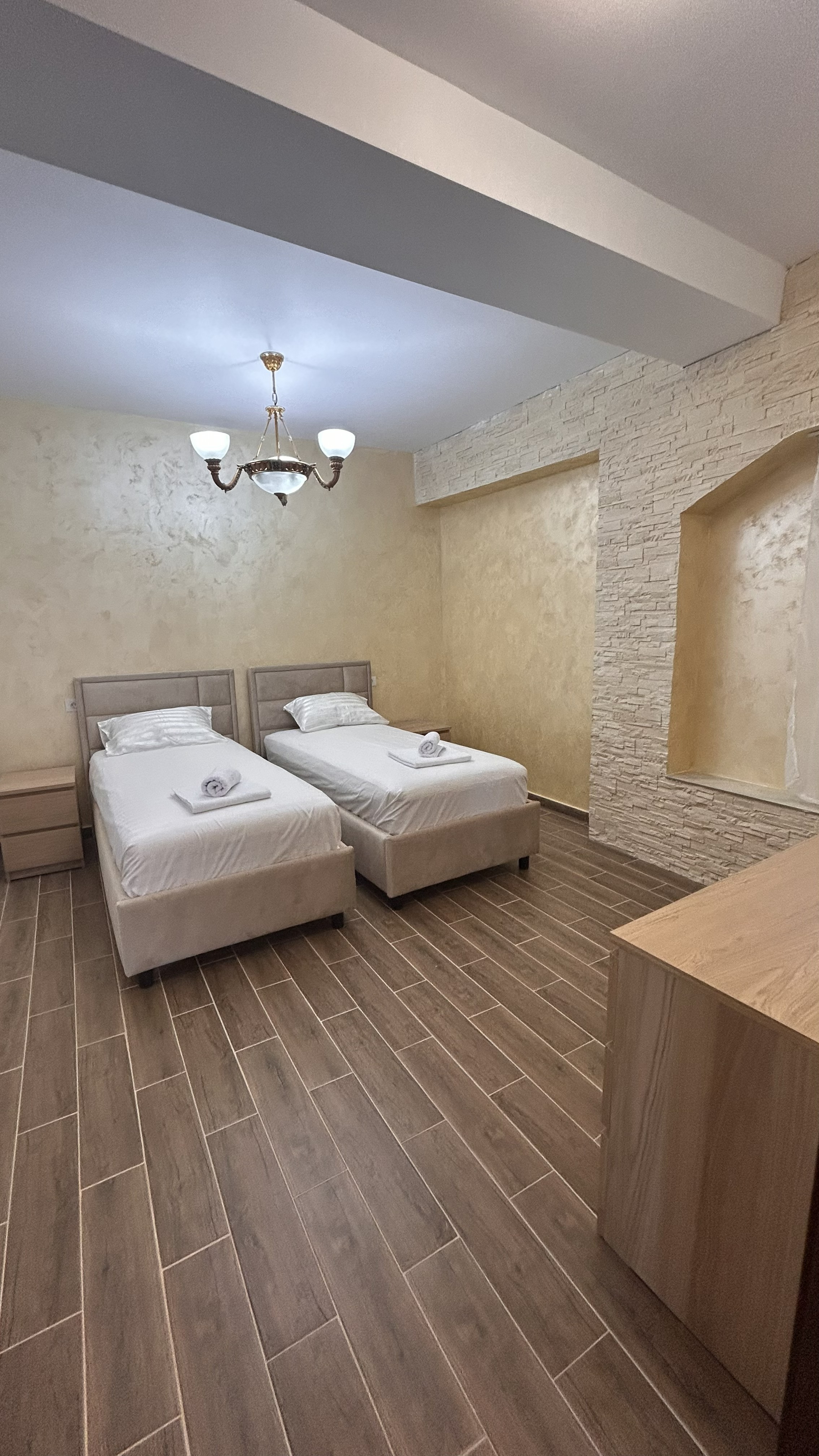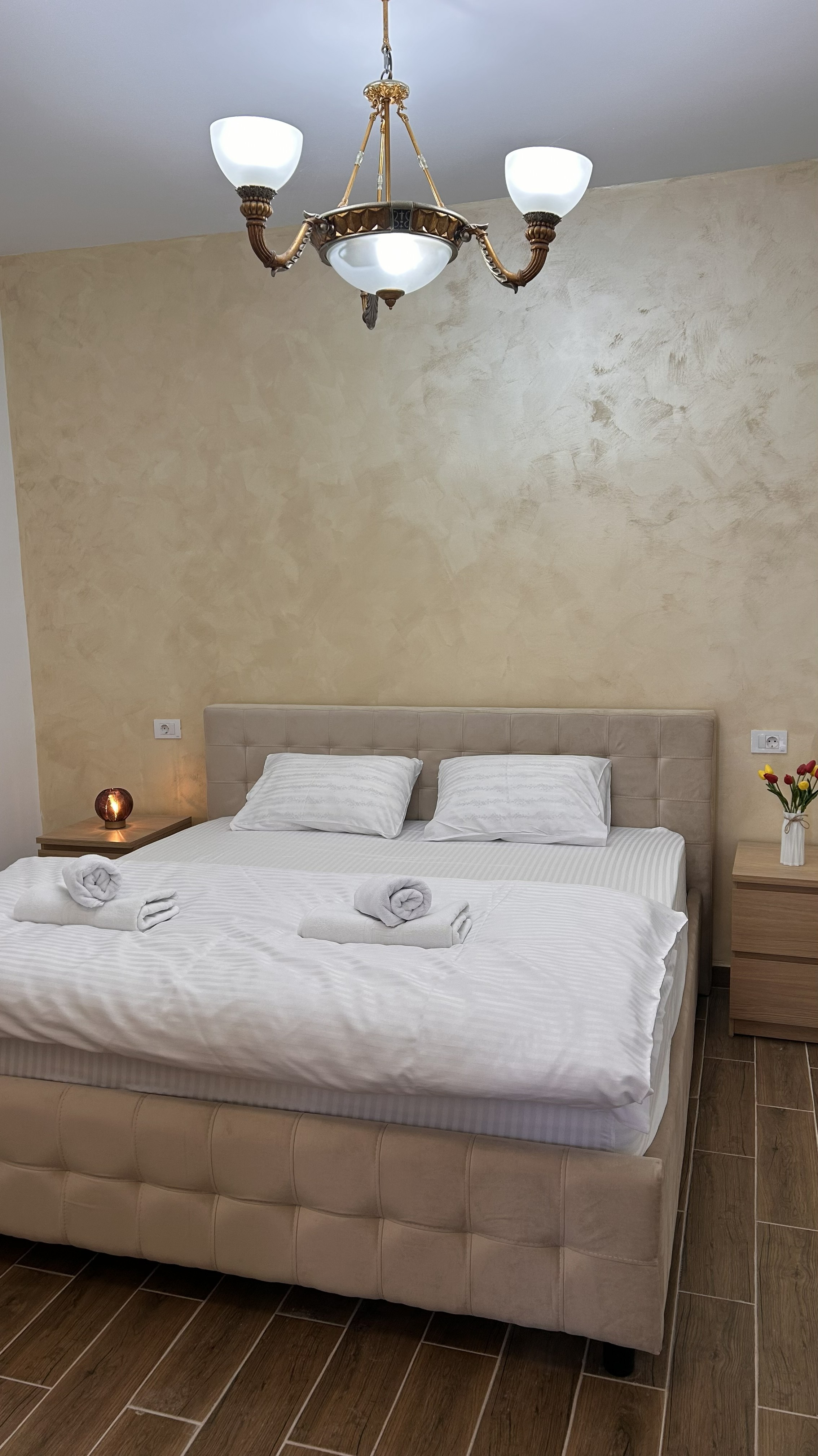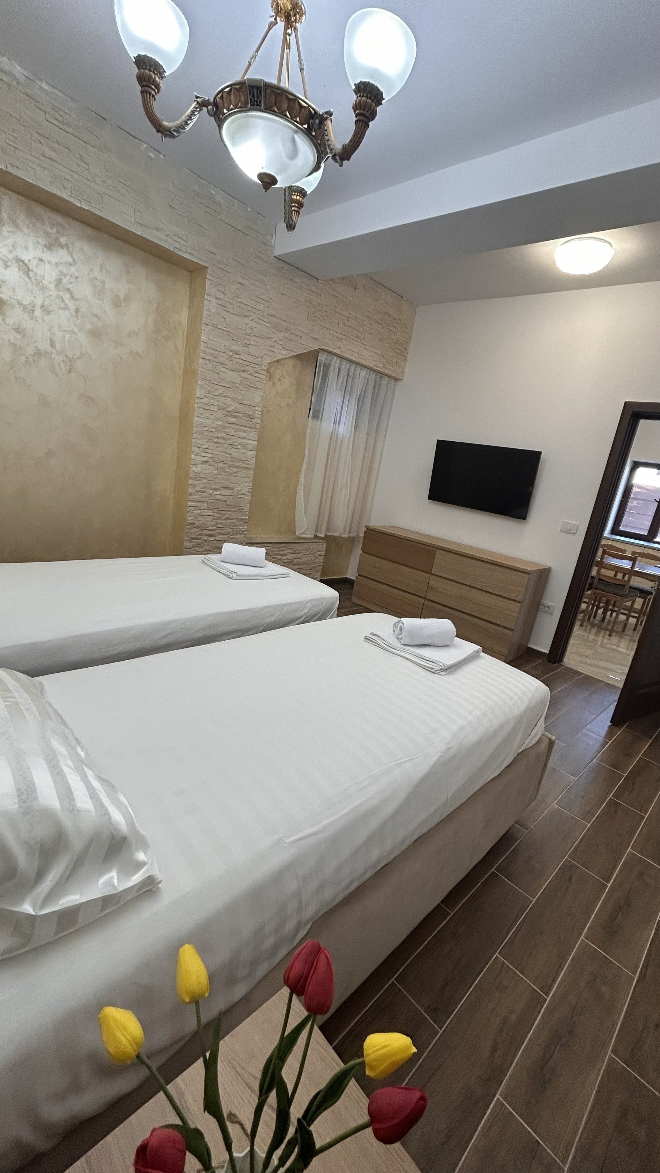 Acest apartament spațios este alegerea ideală pentru familii sau grupuri mici, oferind două dormitoare separate pentru un plus de confort și intimitate: unul cu pat matrimonial și unul cu două paturi single.